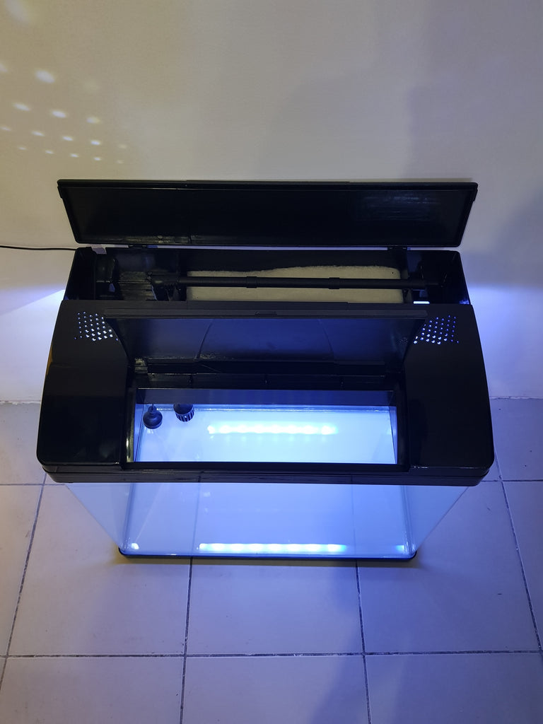 (61cm x 35cm x 57cm) (87L). - Fully functioning lid-mounted filter (25W pump)