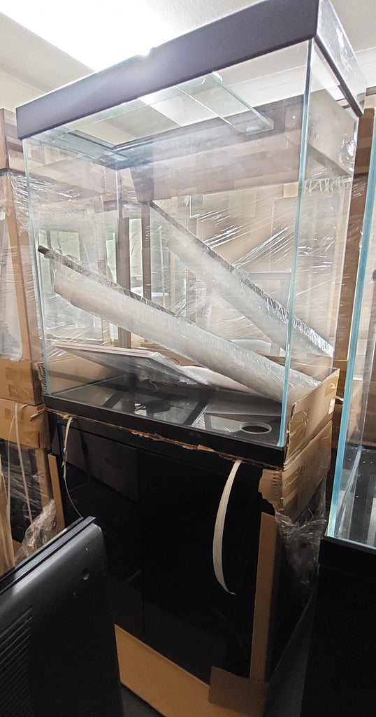 This is a 210L tank (80cm x 40cm x 85cm) perfect for shrimp, snails or fish. It comes with a light, and fully functioning filter, supported at the base by a white or black cabinet for storage of your aquarium accessories, chemicals, and equipment as well as a sump tank for powerful filtration.
