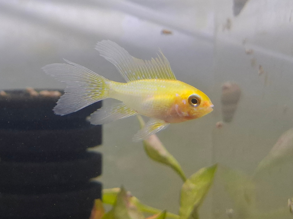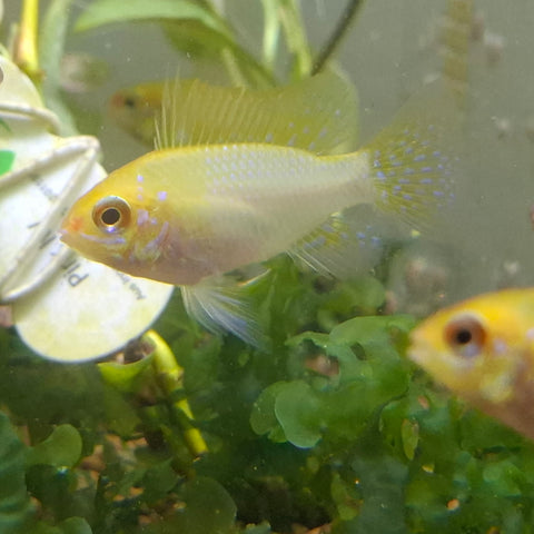 The Golden Ram is a selectively bred variant derived from the German Blue Ram, itself a color variant of the original wild Ram.