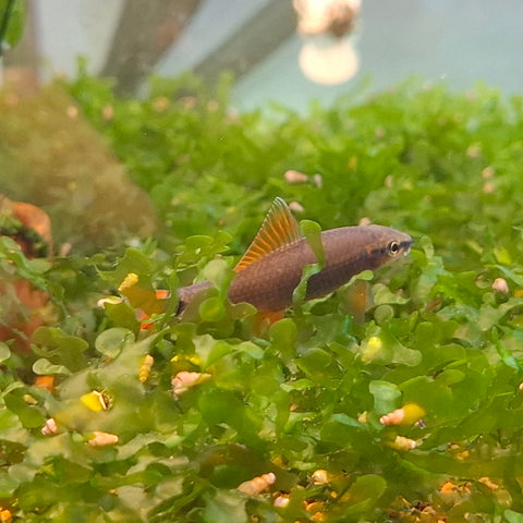 This listing is for one Rainbow Shark, the Rainbow Shark is a tropical freshwater cyprinid that is known for their territorial nature and bright vibrant red fins. They were given the affectionate common name of Rainbow Shark, due to their upright dorsal fin which gives them the appearance of a shark.