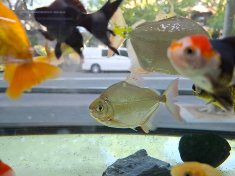 The Silver Dollar has a round predator look, The silver dollar fish is a freshwater fish known for its flat, disc-shaped body and bright, silvery color that resembles a coin. It is native to South American rivers, especially the Amazon basin. Silver dollar fish are peaceful, social fish that prefer to live in groups of 6 and are popular in large aquariums. They are active swimmers, mostly herbivorous, and can grow to about 6 inches (15 cm) in length.