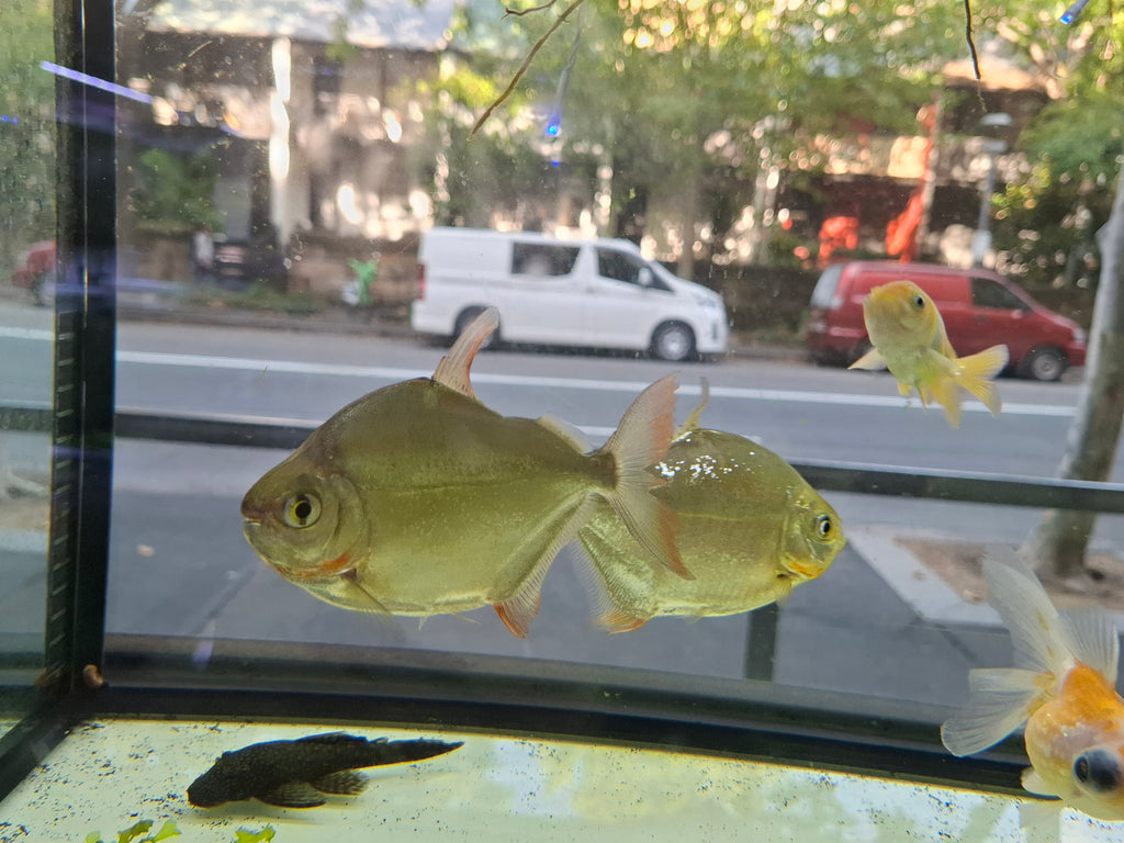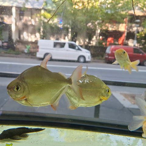 This listing is for 2 Silver Dollars, this is a freshwater fish that looks like a shiny pirahna, but its actually a gentle gaint who loves soft plants.